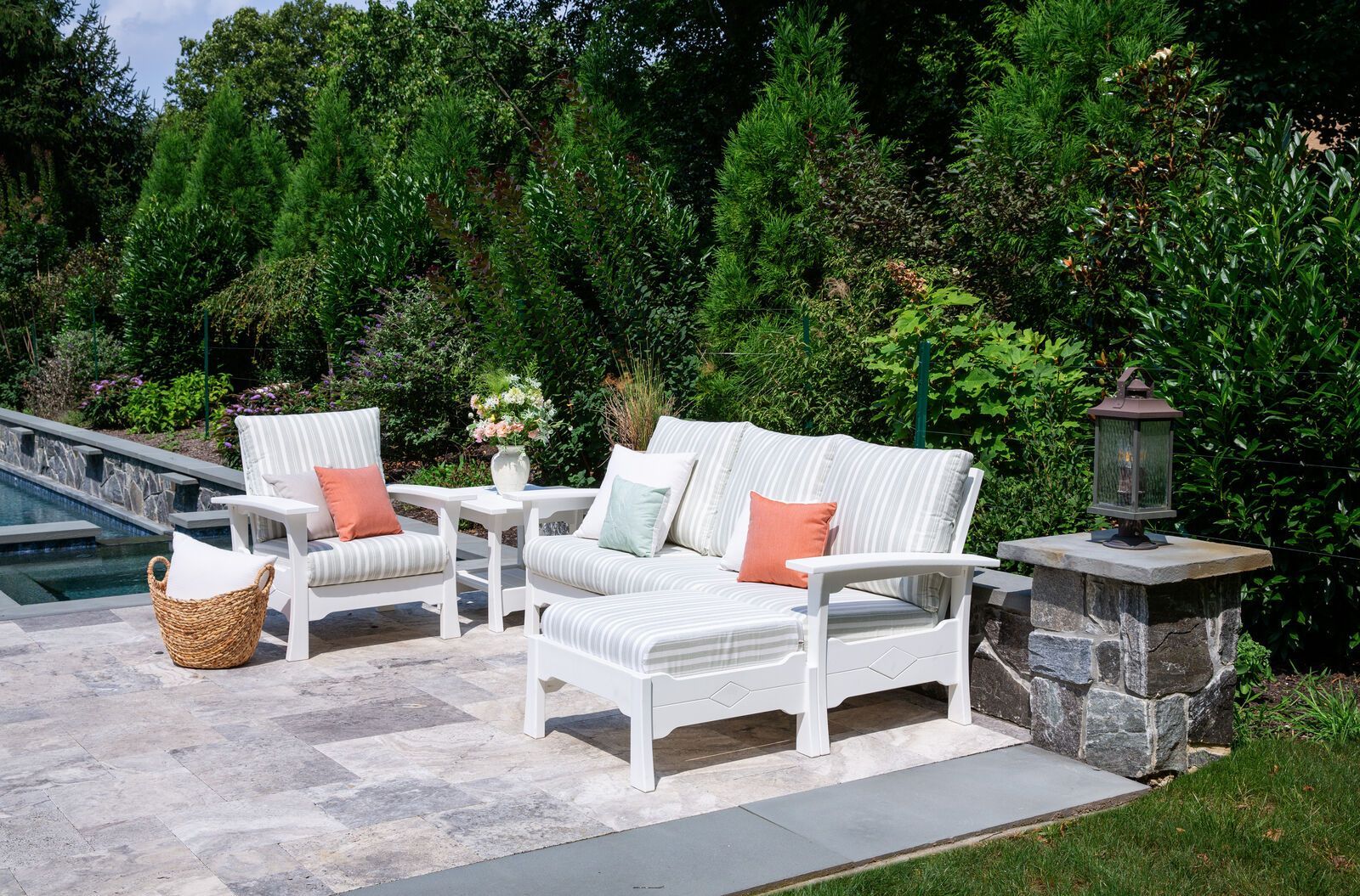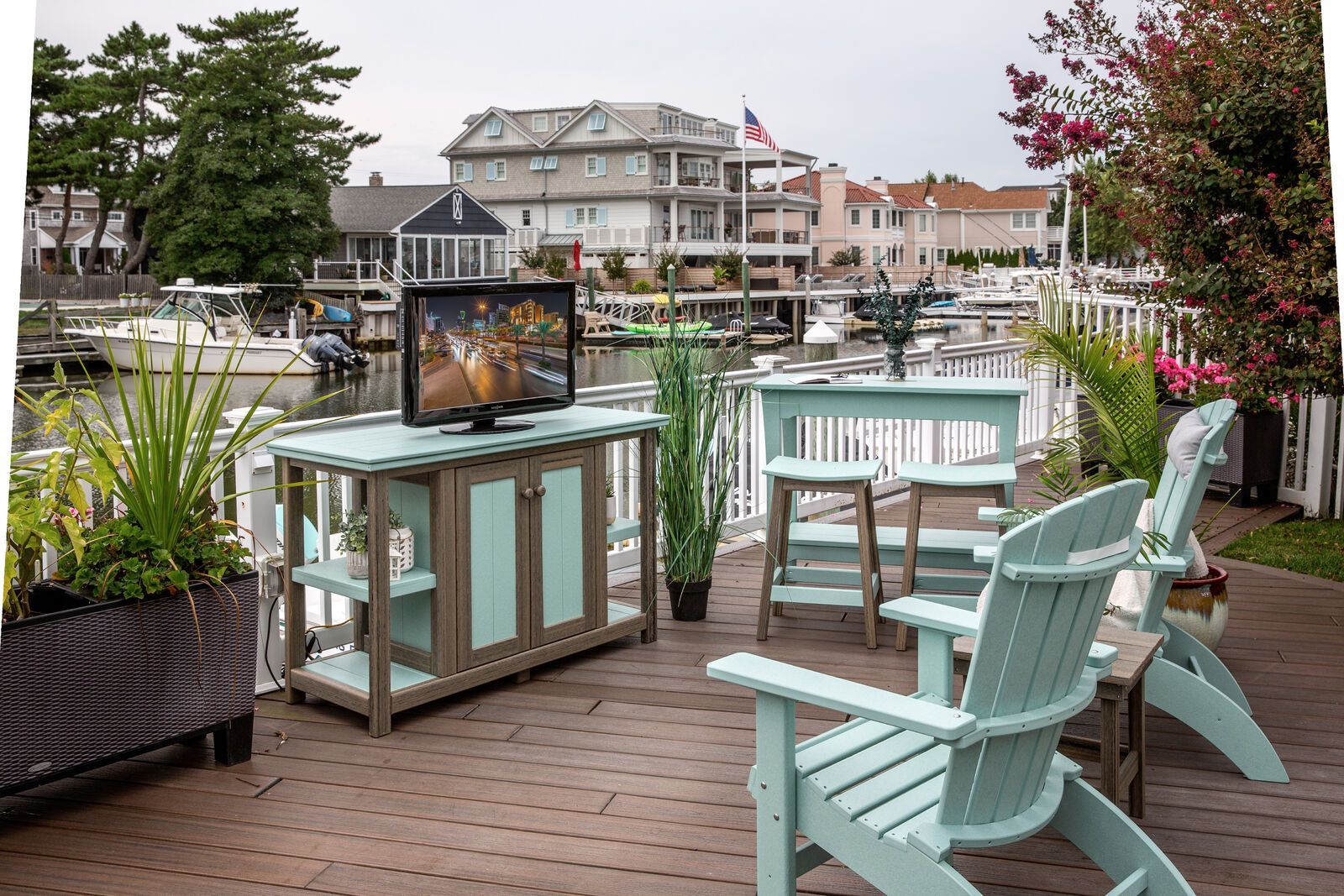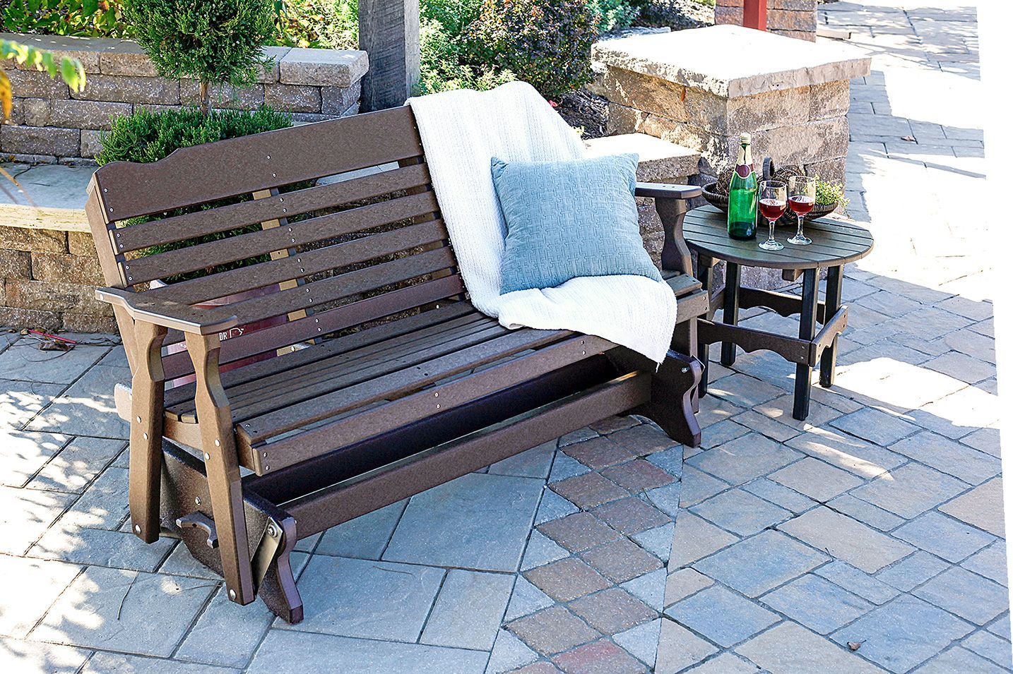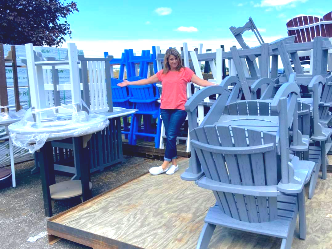 We specialize in maintenance-free outdoor furniture and decor. Our handcrafted poly furniture has no wood to rot and no paint to fade. Each item of our poly furniture is made with recycled material in the USA.